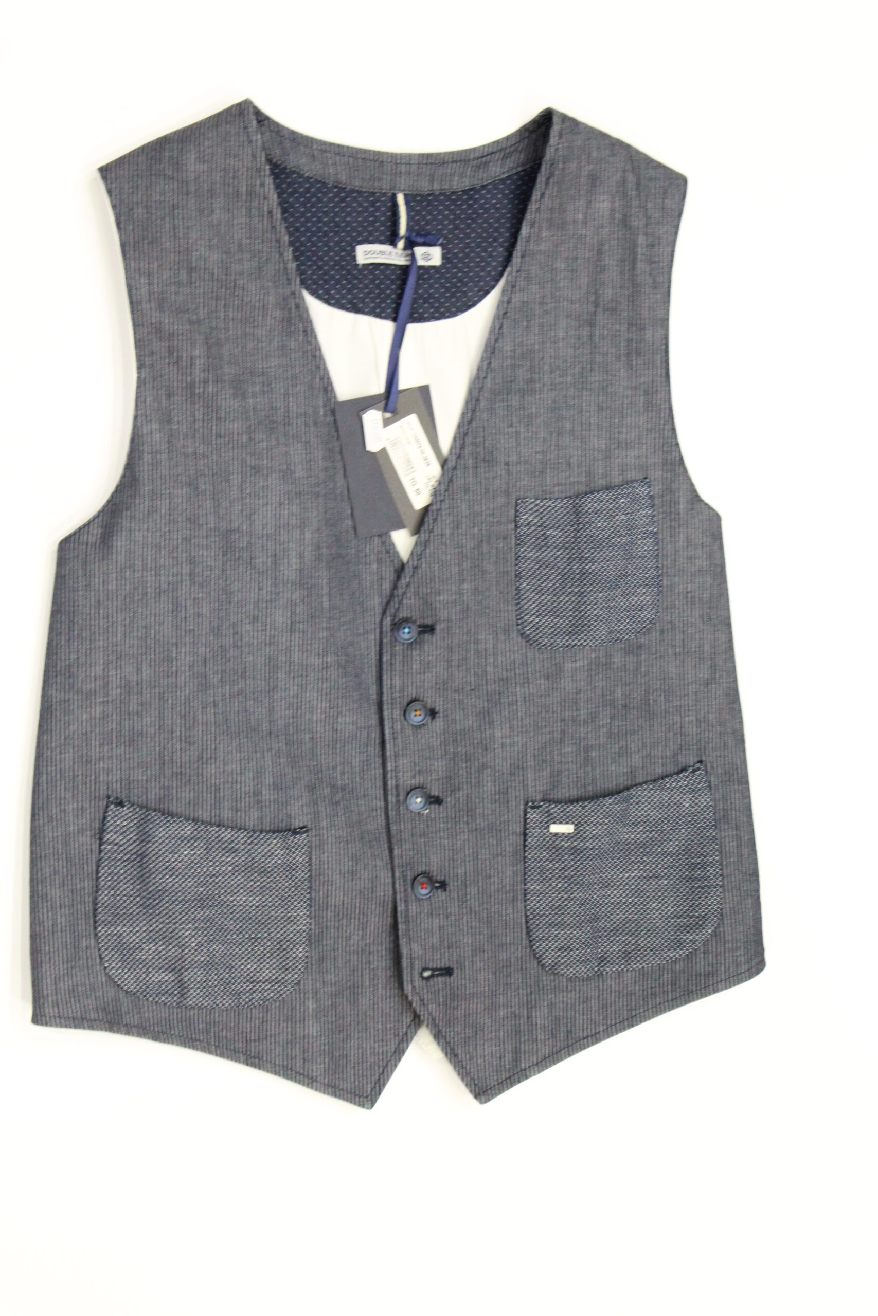 Gilet panciotto uomo, tessuto cotone , fantasia gessato, col Blu riga chiara