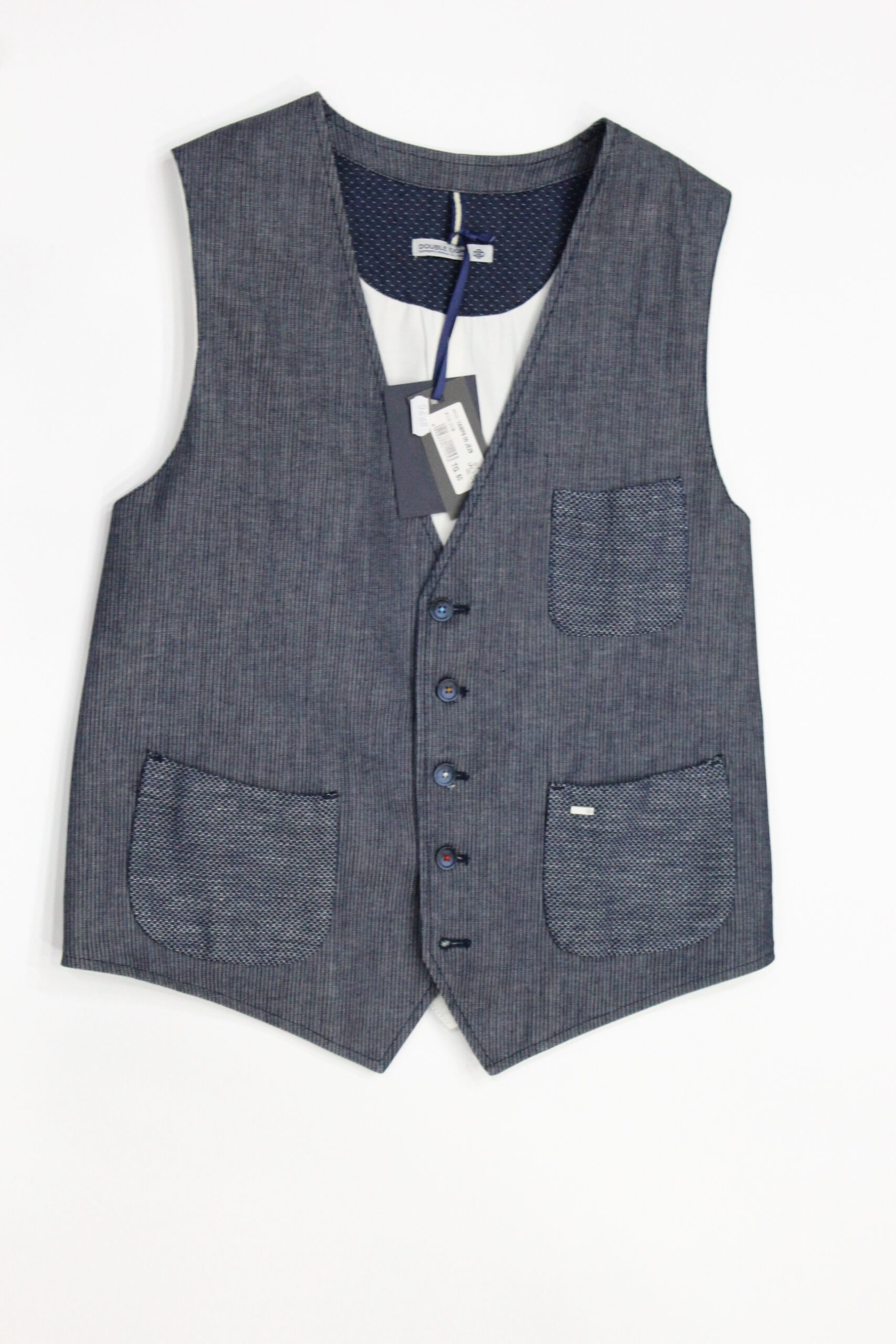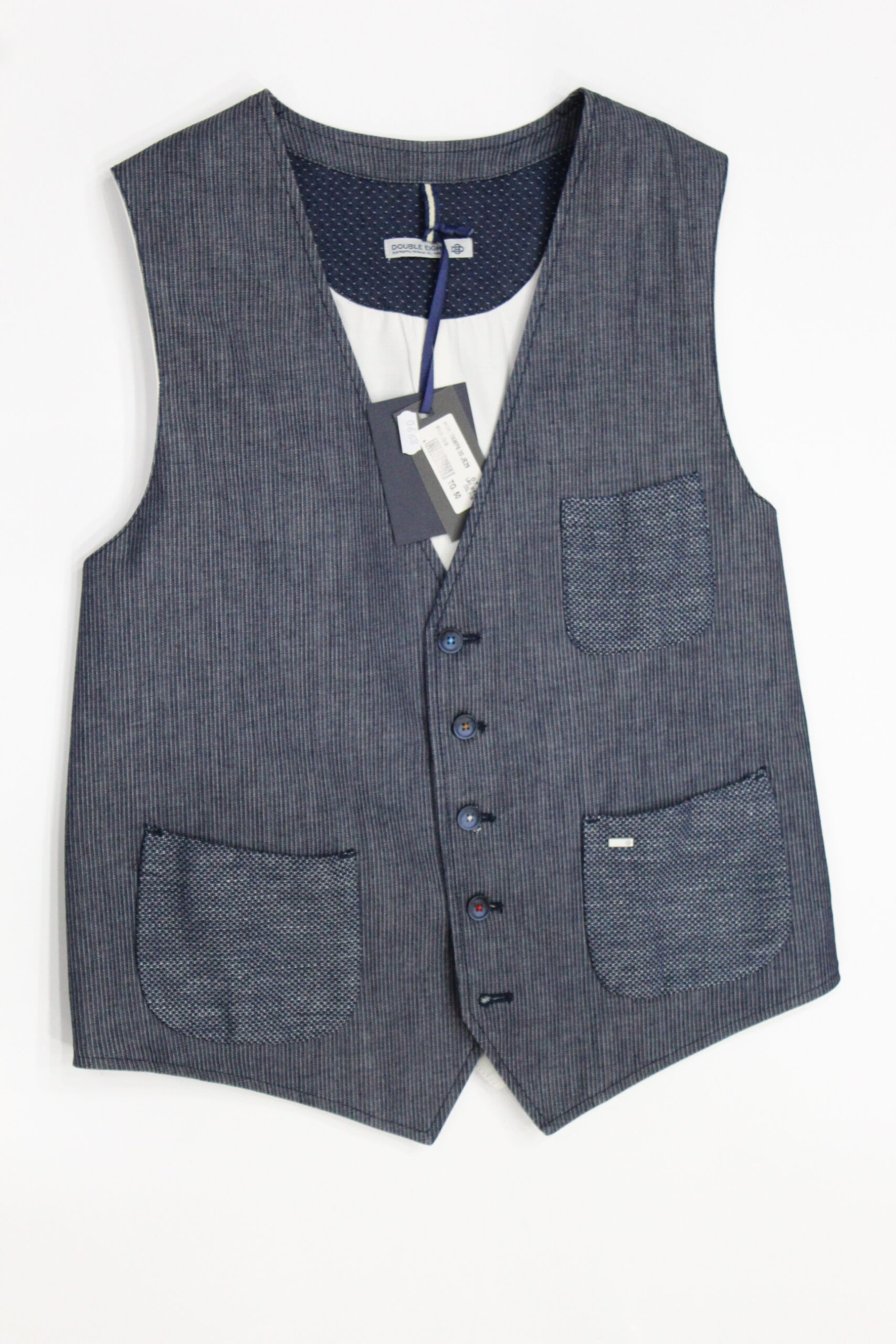 Gilet panciotto uomo, tessuto cotone , fantasia gessato, col Blu riga chiara