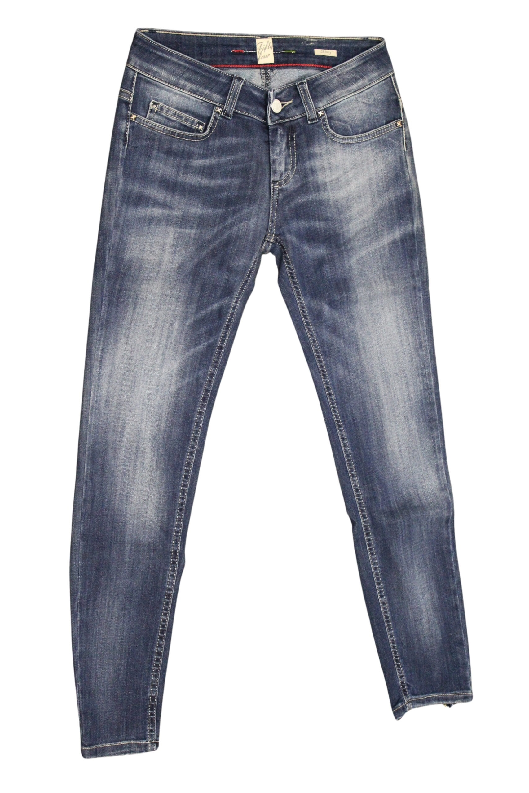 Jeans donna elasticizzato con zip, vestibilità Skinny, zip sul fondo, 70% cot – 28% poliest- 2% elastan, col blu denim stone washed