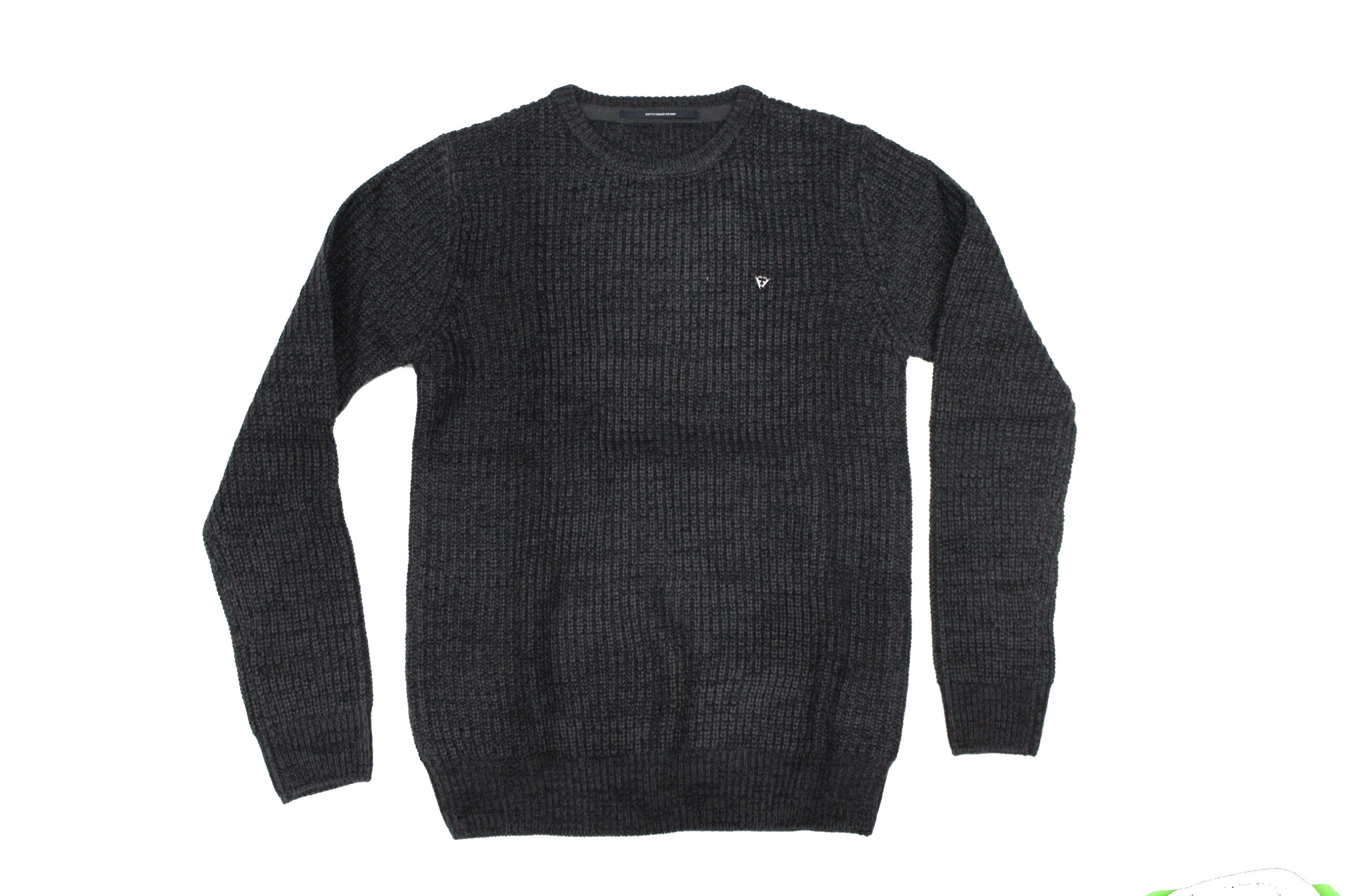 maglia lana uomo girocollo , lavorazione a coste, col grigio melange , 15%lana 85% acril,