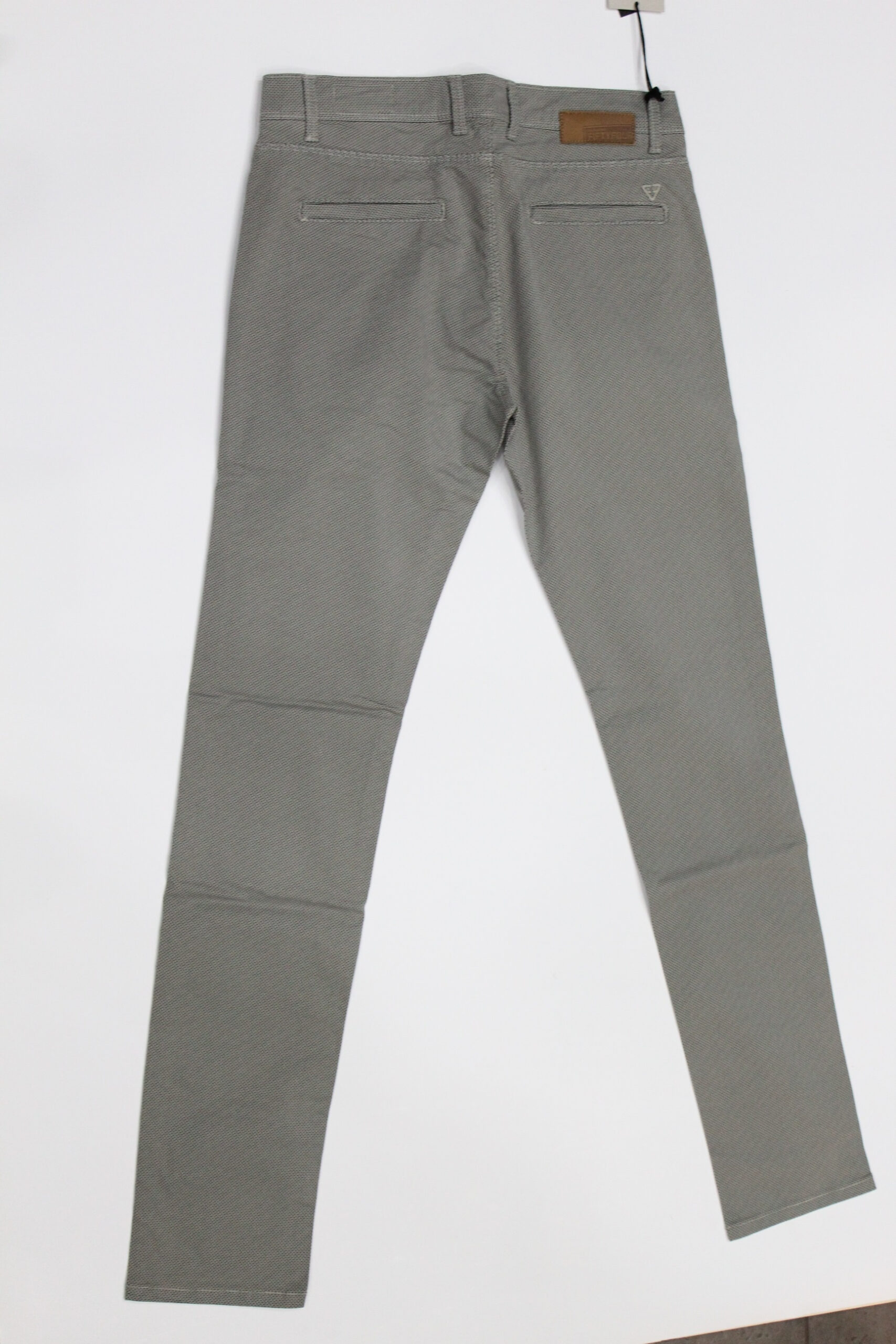 Pantalone uomo mod Chinos, tessuto leggero elasticizzato, vestibilità slim, micro fantasia pois col beige