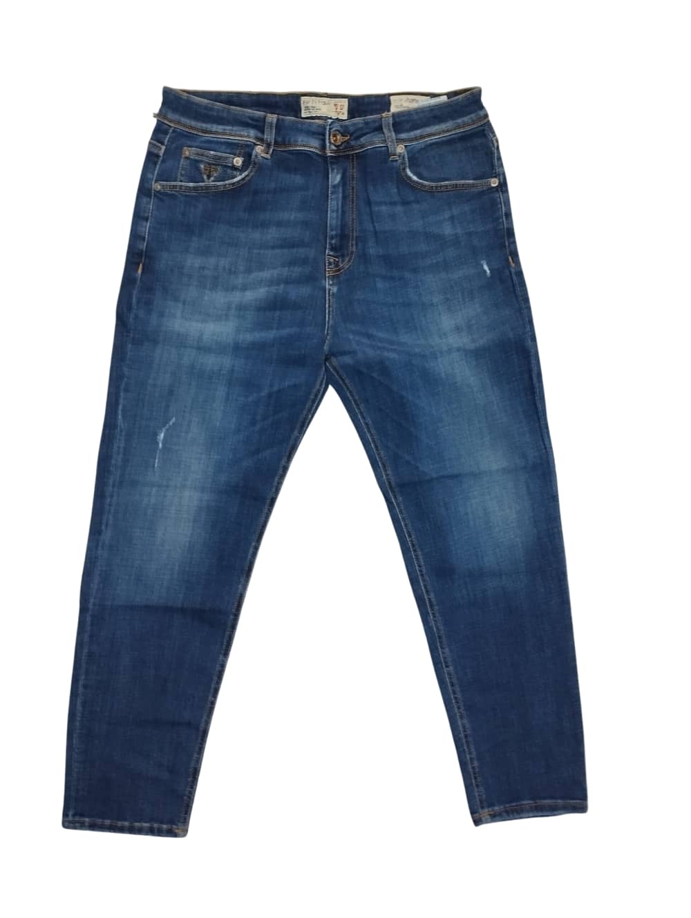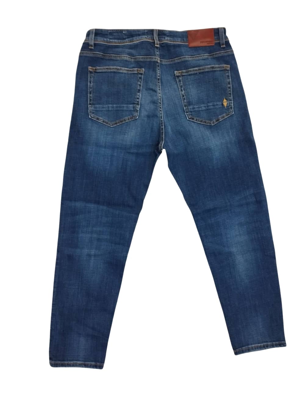 Jeans uomo ,tessuto leggerme elasticizzato 99 cot 1% elastan , chiusura con zip, vestibilità cropped , comodo sulle coscie fondo stretto, colore denim blu scuro