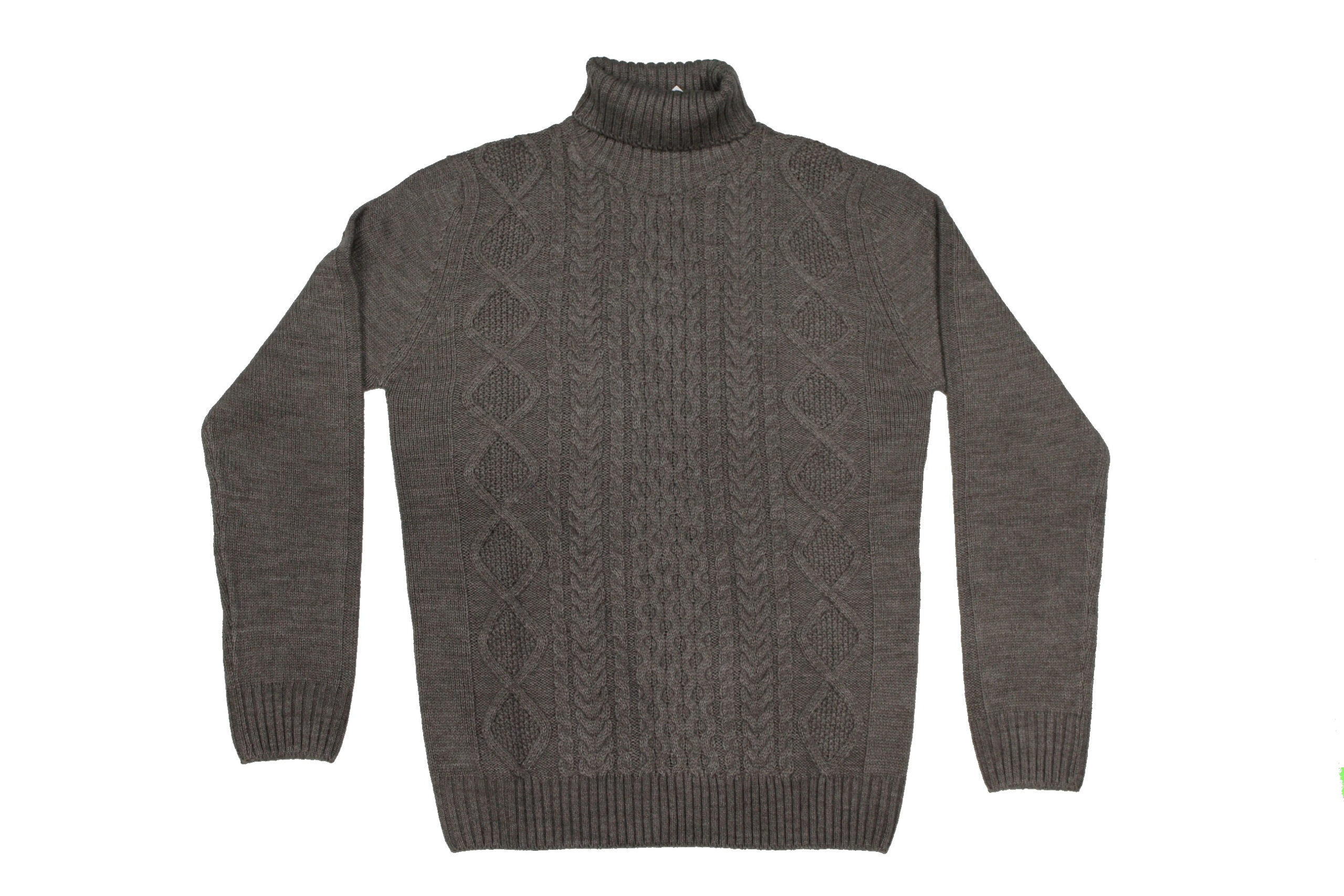 maglia lana uomo collo alto, lavorazione a trecce, col fango , 30% lana-70% acril,
