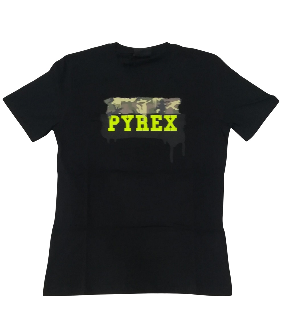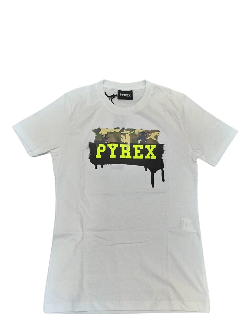 T-shirt ragazzo stampa scritta pirex, manica corta 100% cot, fantasia mimetica