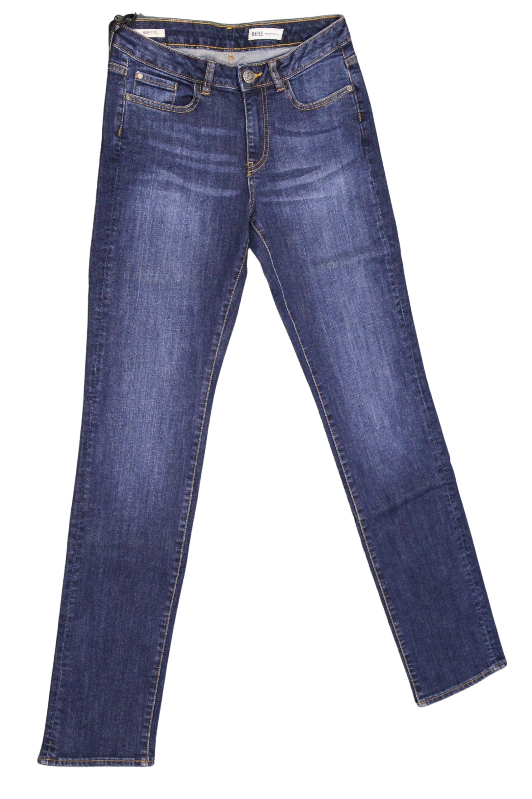 Jeans donna elasticizzato con zip, vestibilità regolare, comoda, 98% cot – 2% elast, col blu denim stone washed scuro