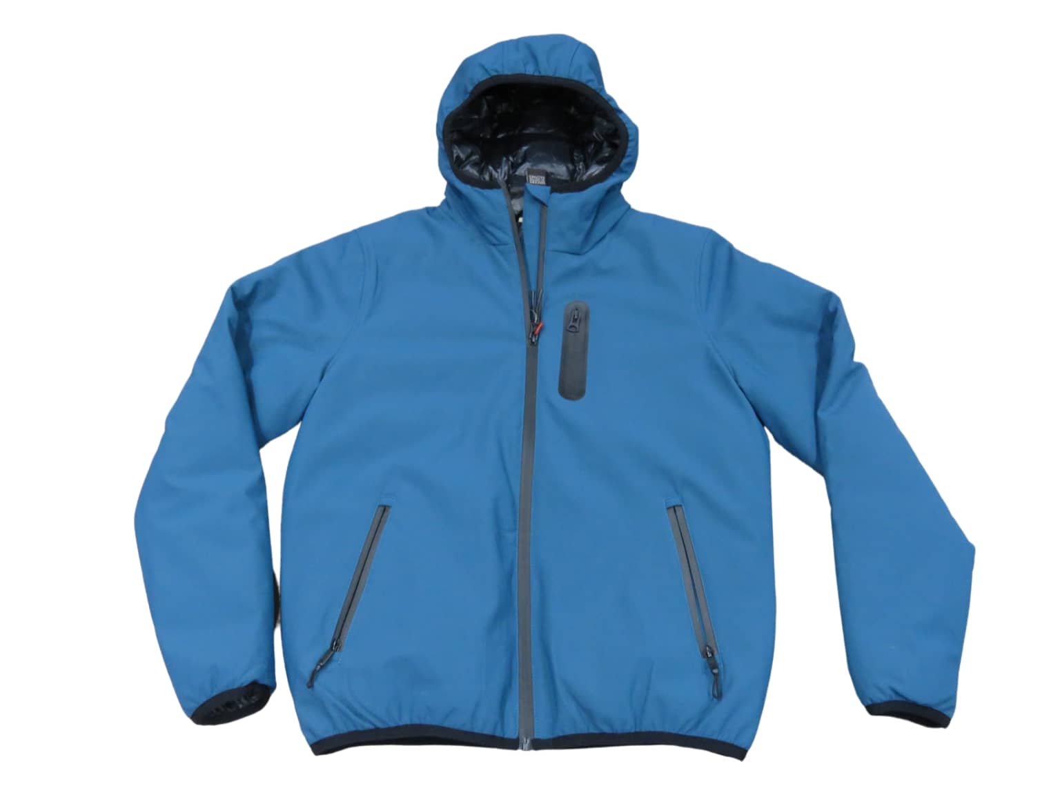 Giubbotto uomo con cappuccio, tessuto esterno tecnico,  imbottitura sintetica,  col avio scuro