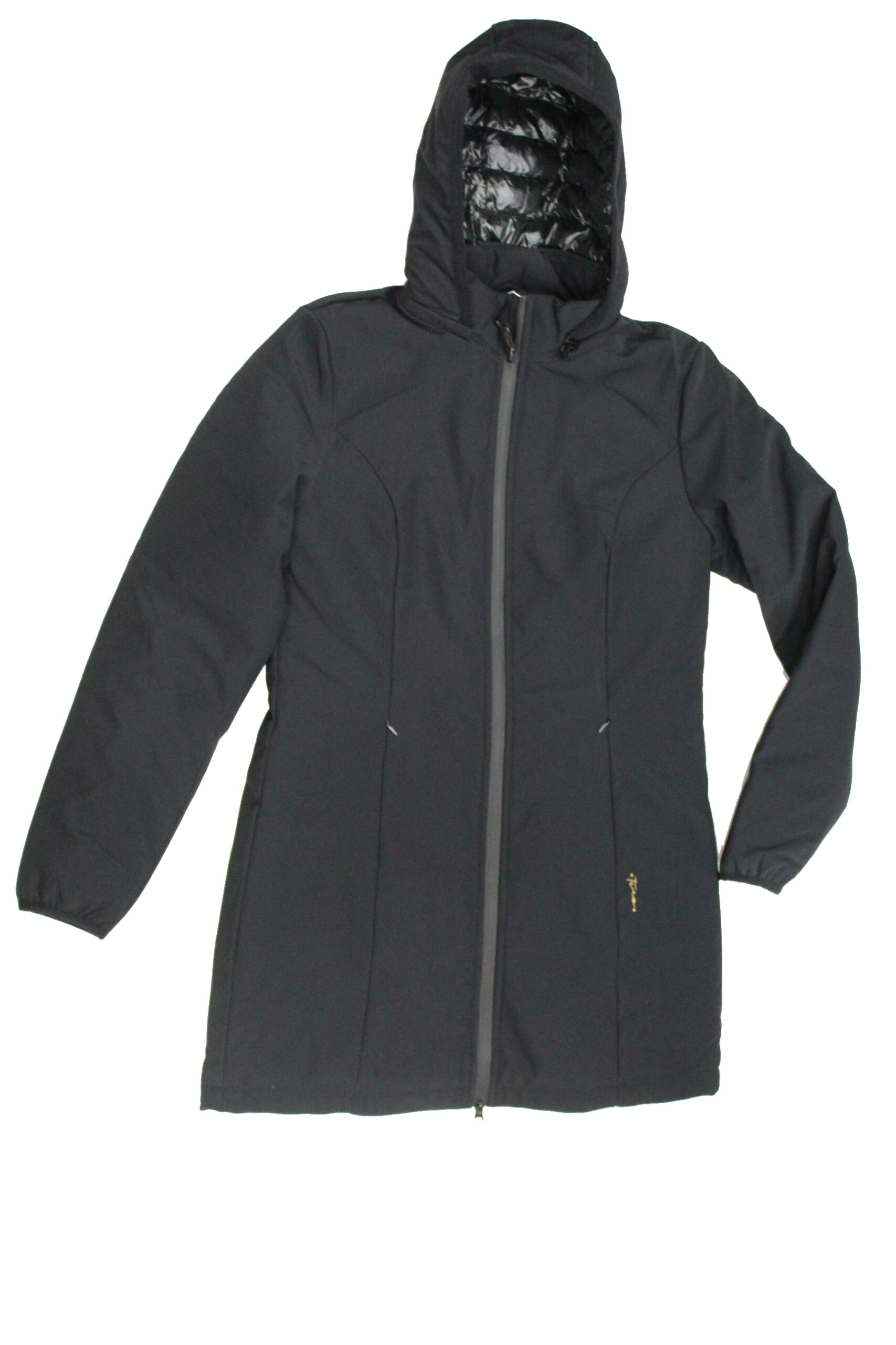 Giubbotto DONNA LUNGO con cappuccio staccabile, col nero , tessuto tecnico in soft shell, imbottitura sintetica