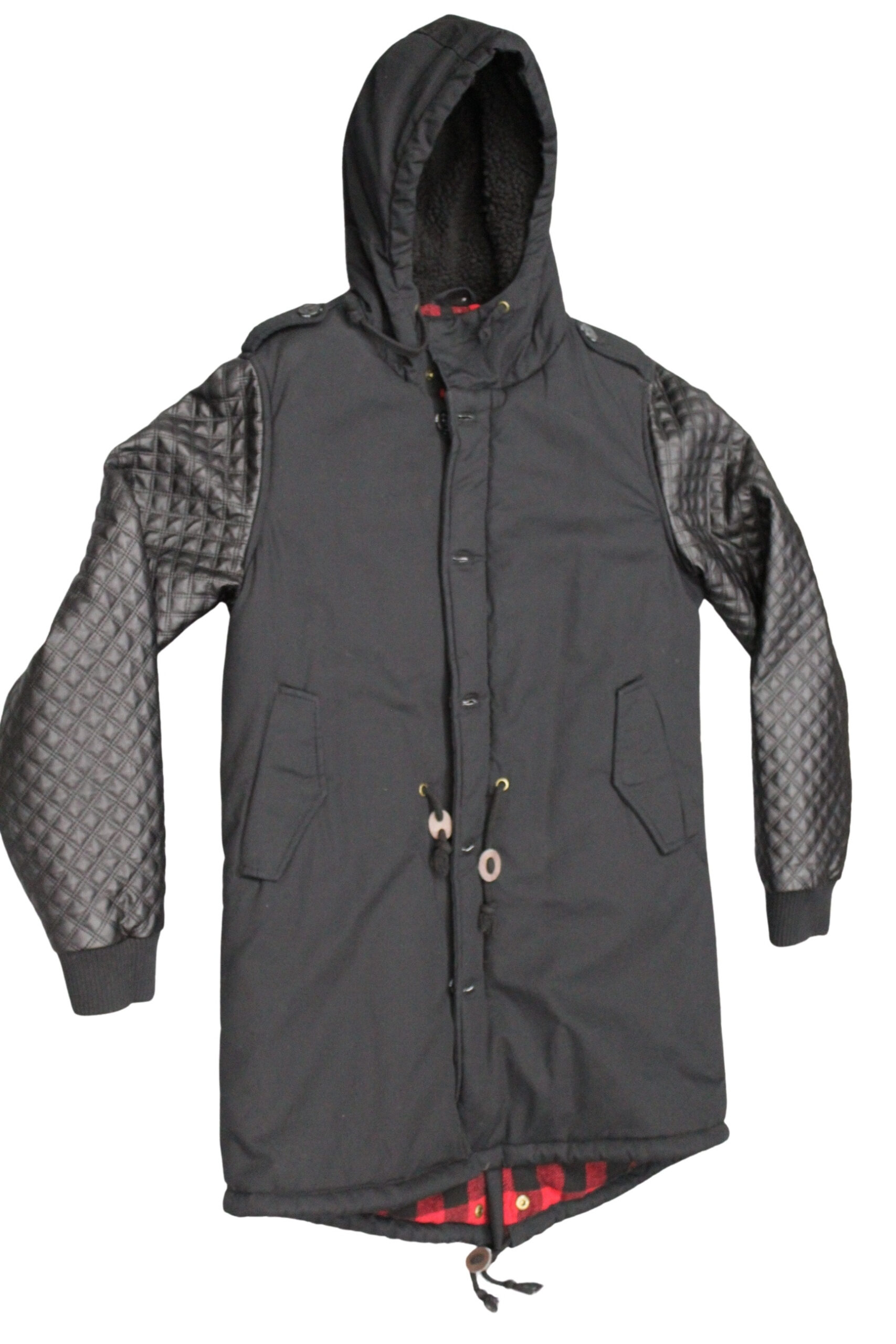 Parka uomo con cappuccio, col nero, imbottitura sintetica, tessuto braccia ecopelle