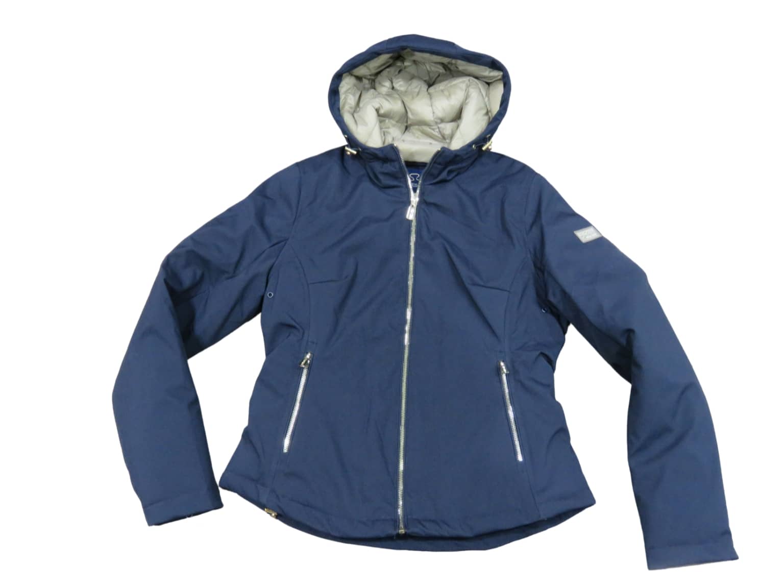 Giubbino donna corto con cappuccio tessuto esterno soft shell imbottitura sintetica, col blu