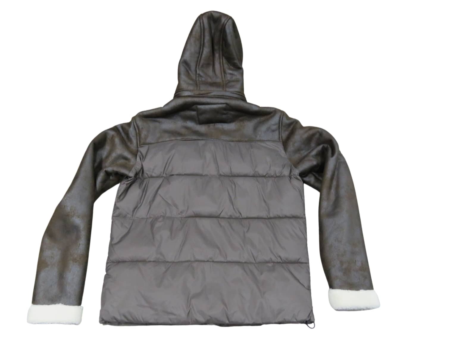 Giubbino uomo corto con cappuccio staccabile, tessuto esterno eco-montone e nylon , imbottitura interna sintetica, colore marrone
