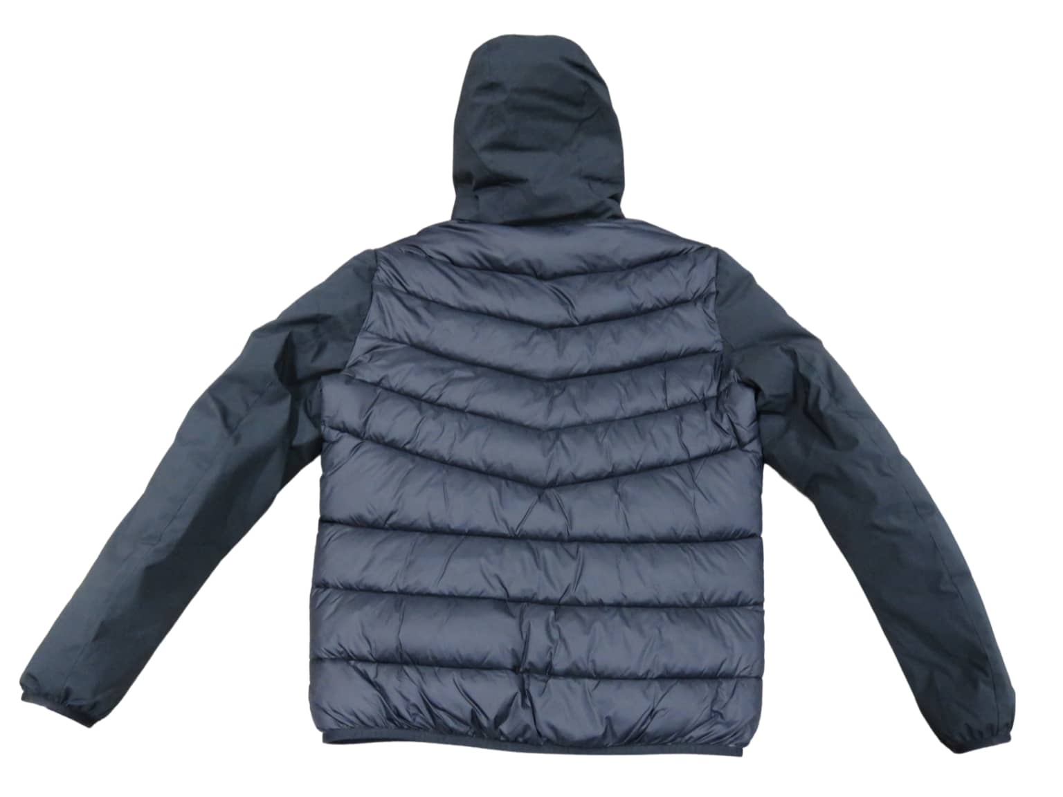 Giubbotto invernale uomo, corto con cappuccio, tessuto esterno nylon braccia soft shell, col nero