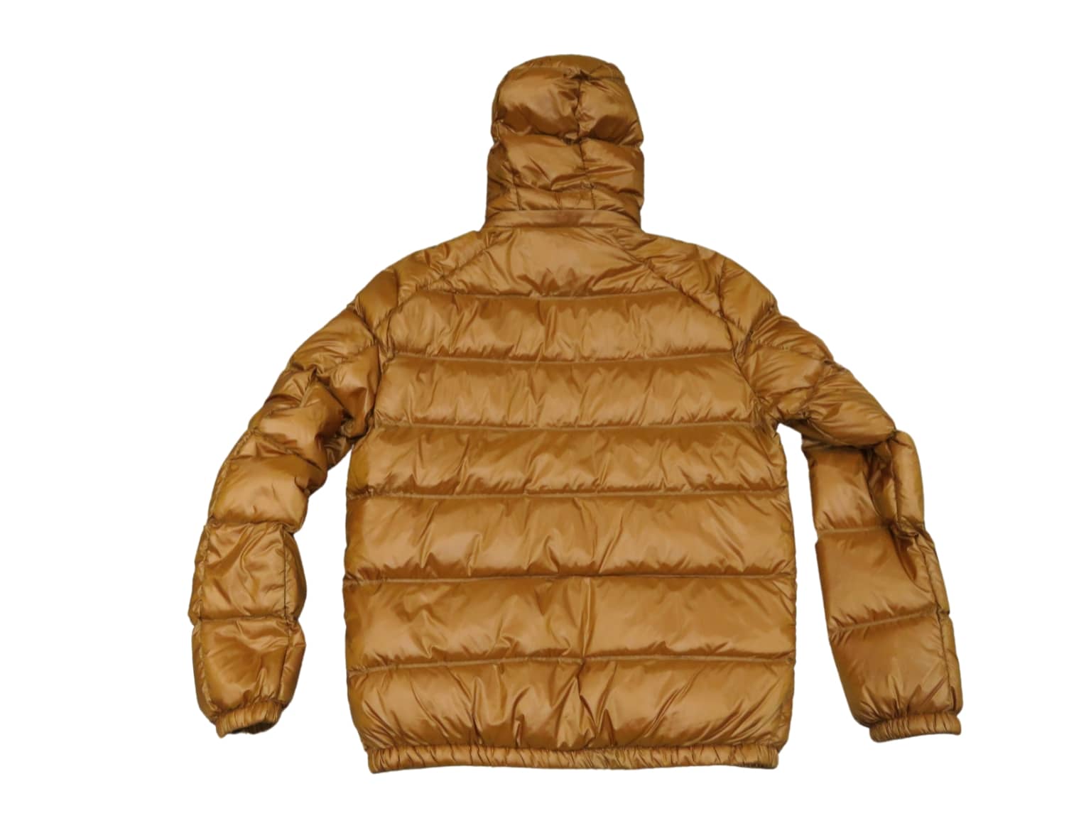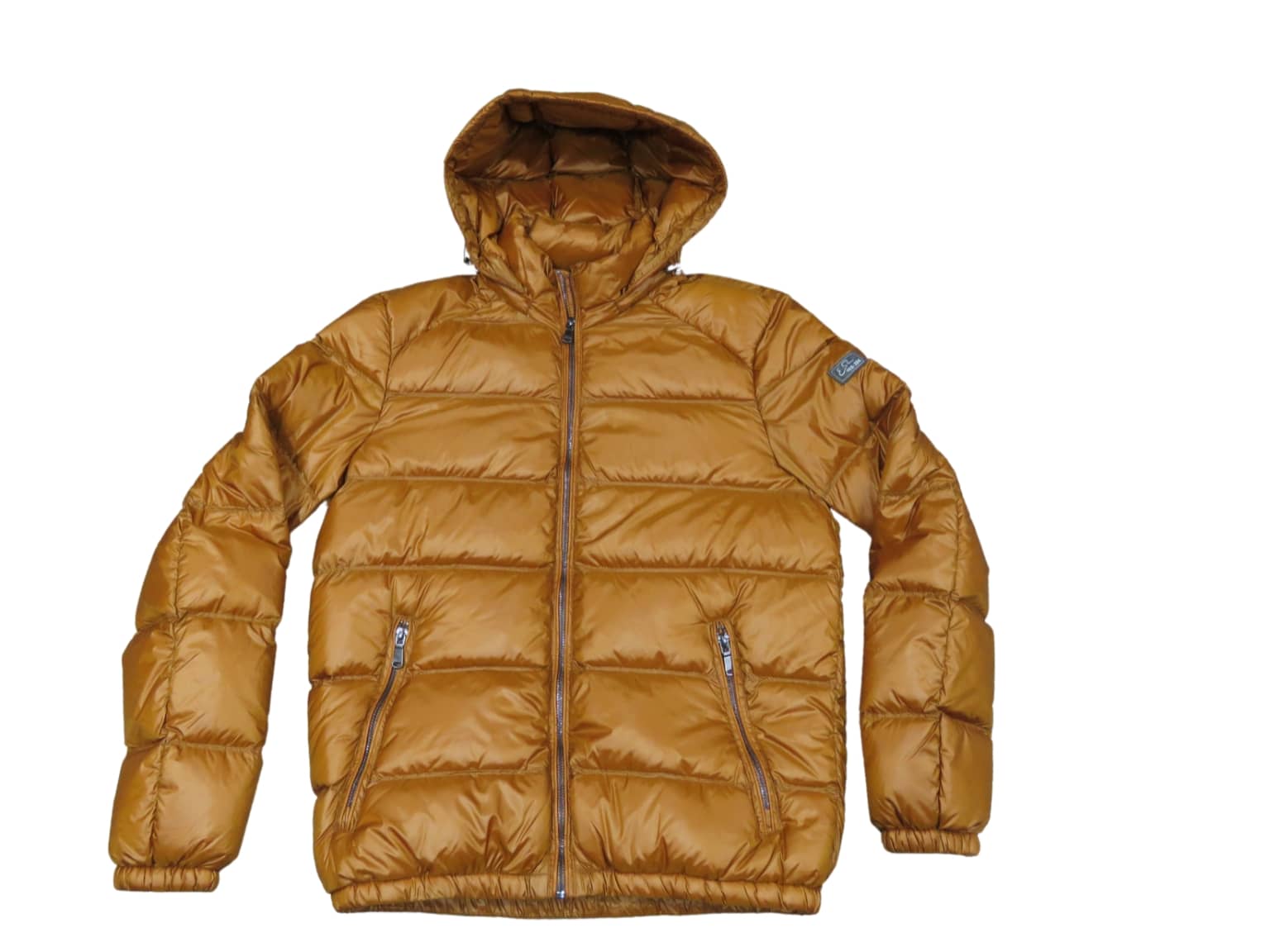 Piumino uomo corto con cappuccio, imbottitura in piuma d’oca, colore arancio ocra